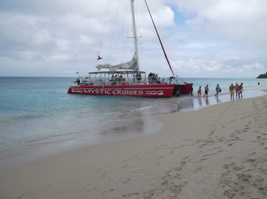 Our means of transport today is one of mystic cruises catamarans. This will take us on a tour around the southern part of the island landing at two beach locations, during the day.