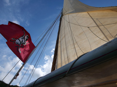 Built in 1969, weighing 54 tons, with two masts and an overall length of 80ft (including bowsprit), Scaramouche was transformed into a Portuguese merchant ship for the filming of Disney’s Pirates of the Caribbean. But its current ‘day job’ consists of giving tours to the Tobago Cays and around the Southern Grenadines.
